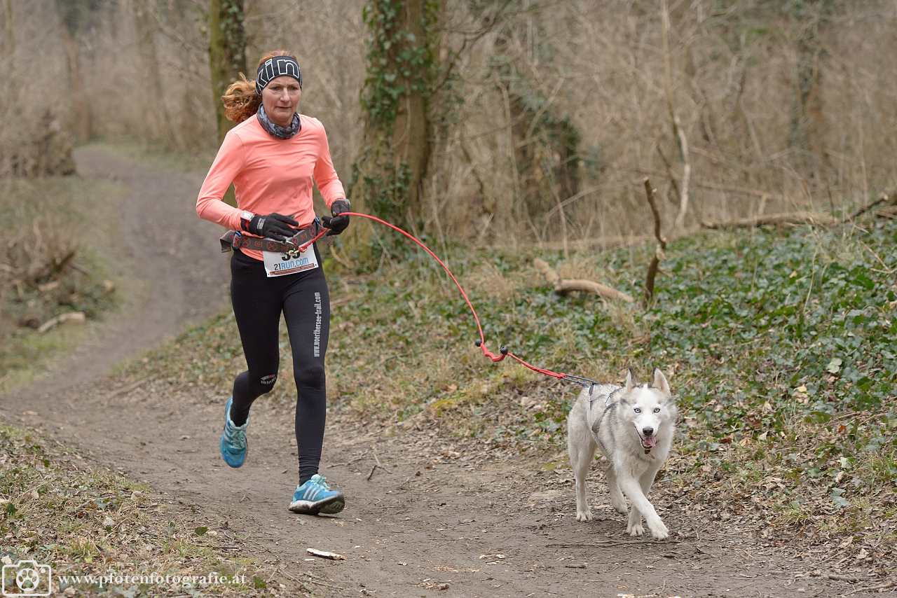 CaniCross: Hier bilden Läufer und Hund ein Team. Die maximale Länge für die Leine beträgt 2 Meter und wird mittels Bauchgurt mit dem Zuggeschirr des Hundes verbunden. Auch hier muss sich der Hund immer vor dem Läufer befinden.