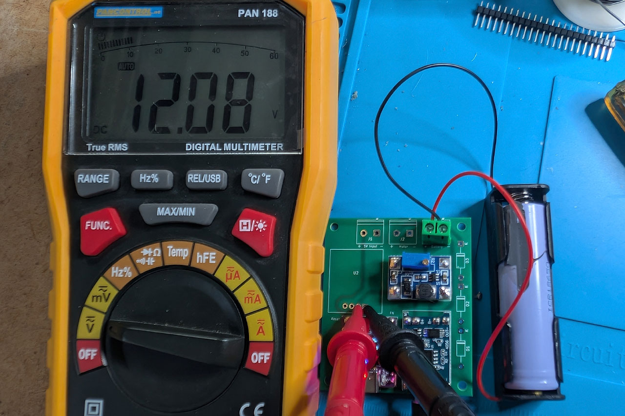 Natürlich habe ich auch in diese beiden Uhren wieder meine Nebenuhrsteuerung eingebaut. Diese Uhren werden mit 12 Volt geschaltet, daher habe ich zunächst die Spannung entsprechend eingestellt.