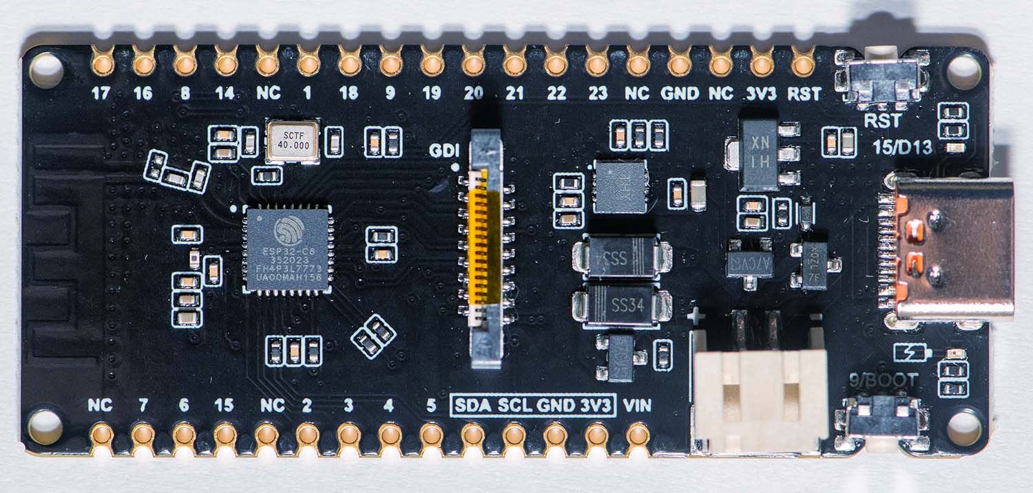 - Extensive Peripherals: The ESP32-C6 offers a variety of interfaces, including SPI, UART, I2C, I2S, RMT, TWAI, PWM, SDIO, and Motor Control PWM.