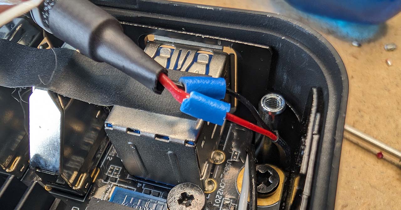 As mentioned earlier, I took a more radical approach to the power connection this time. I simply snipped off the connectors and soldered the wires together.
